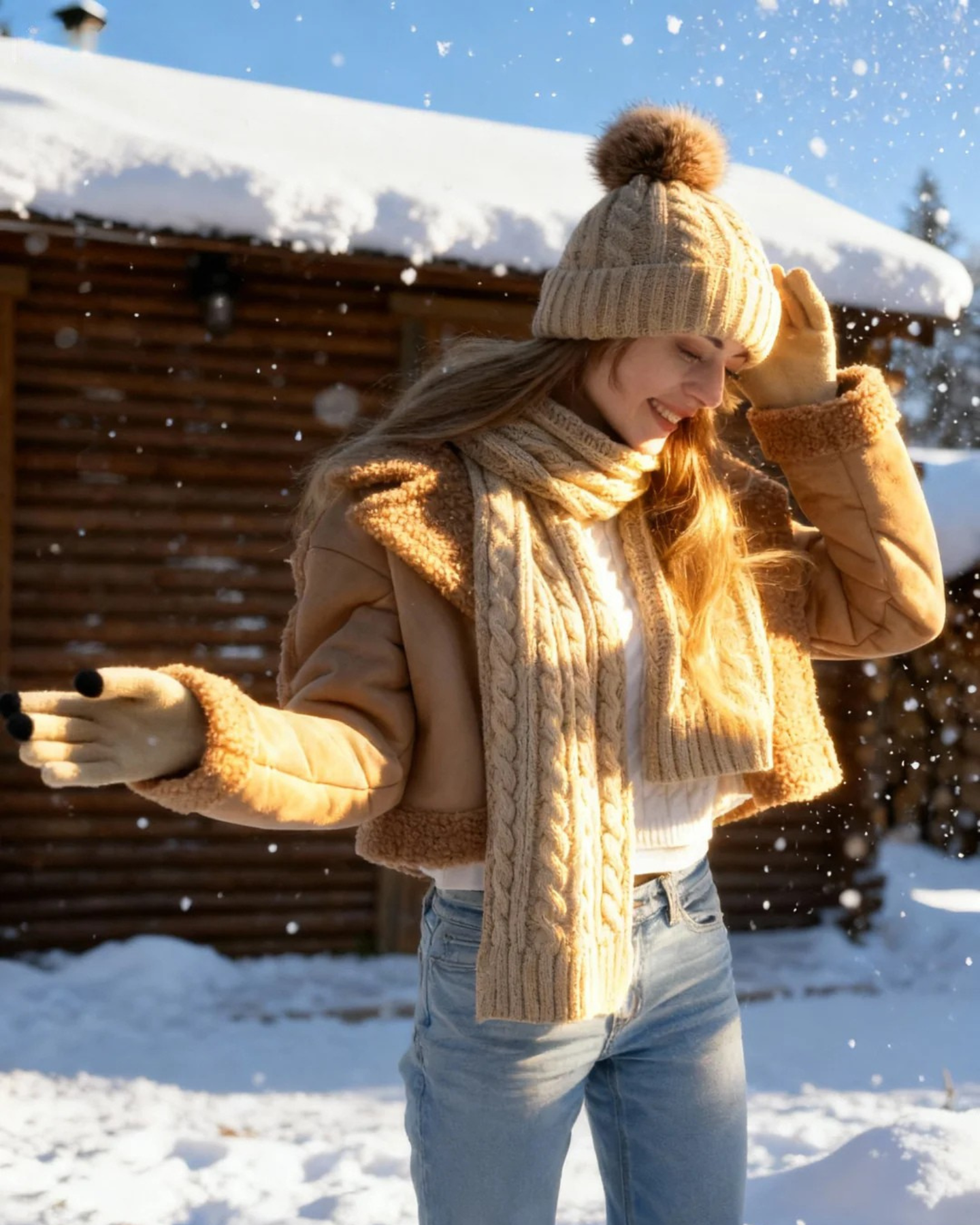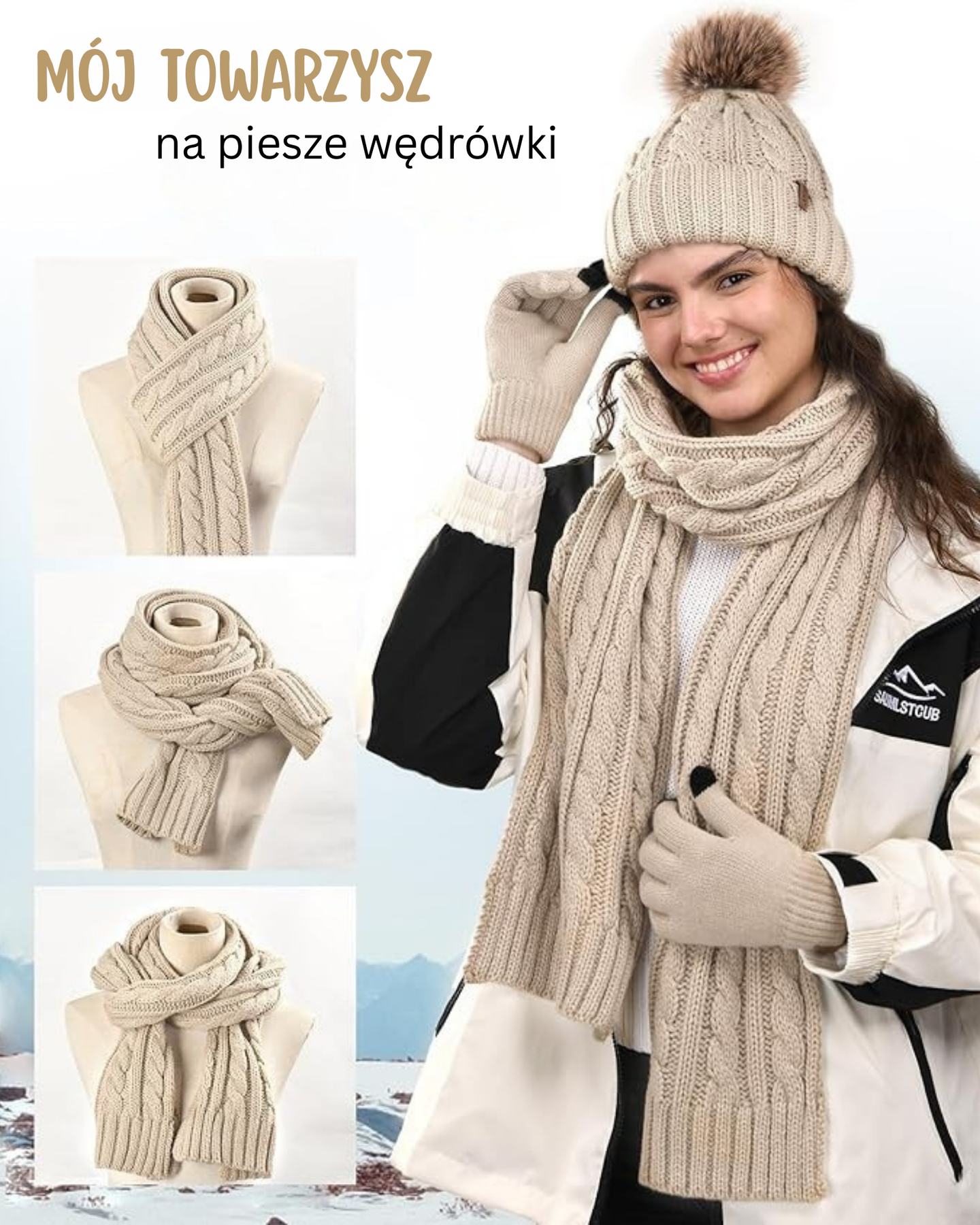 Zimowy elegancki zestaw czapka-szal-rękawiczki