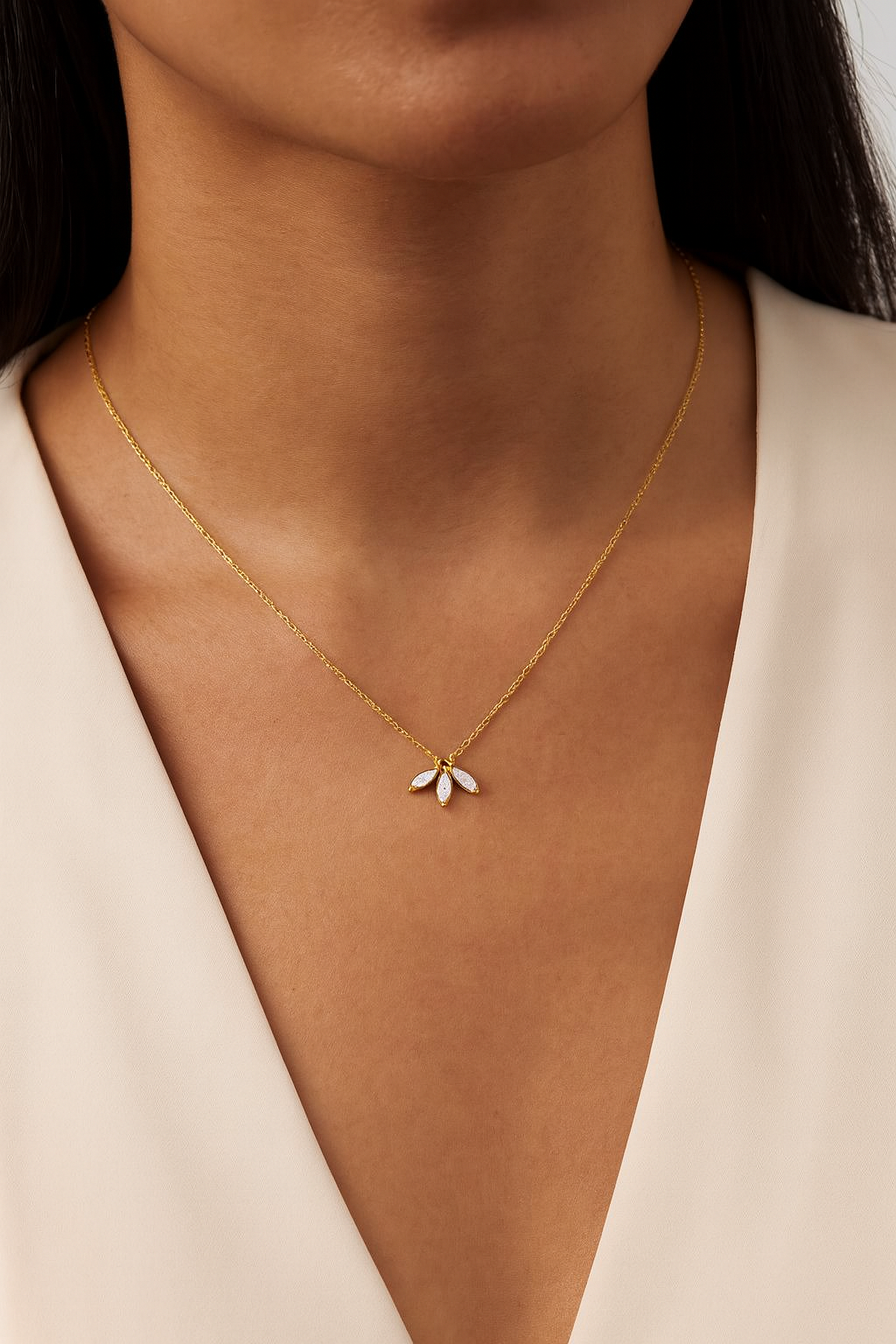 葉に宿る光のような繊細な輝きが、あなたの胸元を優美に照らします。