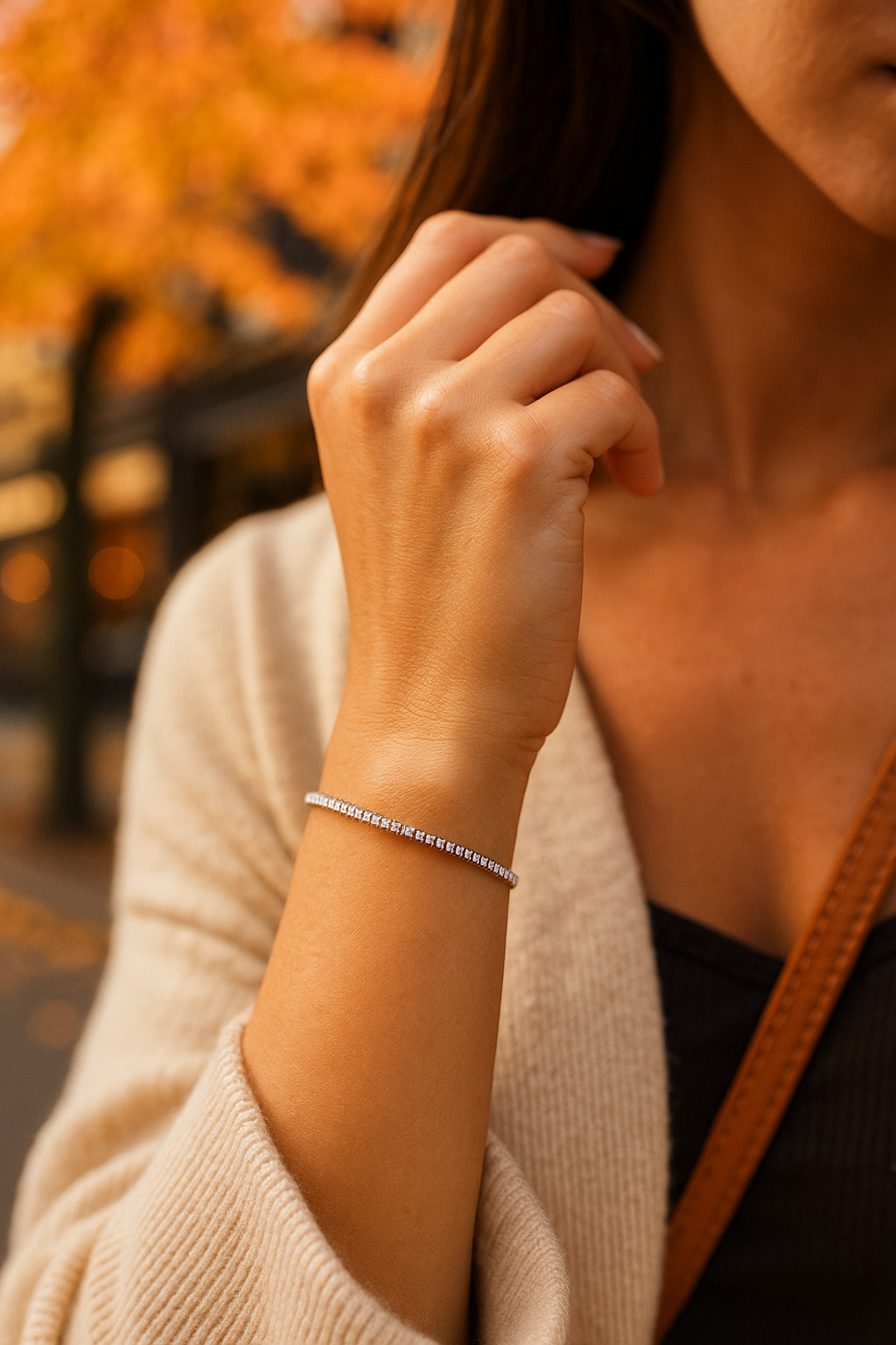 連なるストーンの澄んだ輝きが、どんな装いにも上品な光を添え、手元をエレガントに引き立てます。