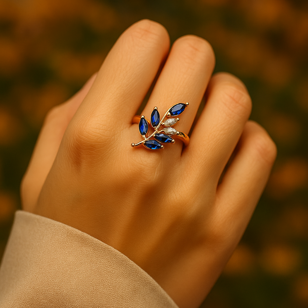 • サファイアブルーストーン – 深く豊かな色合いで上品な存在感