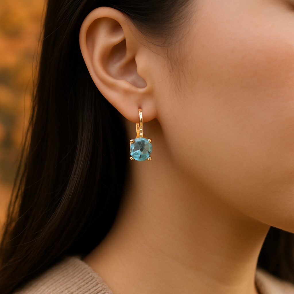 Ginaーナ--神秘的なサファイアストーン付きゴールドクレオールピアス