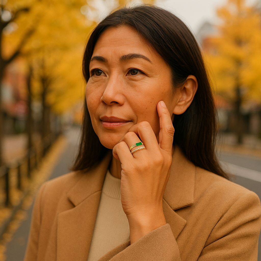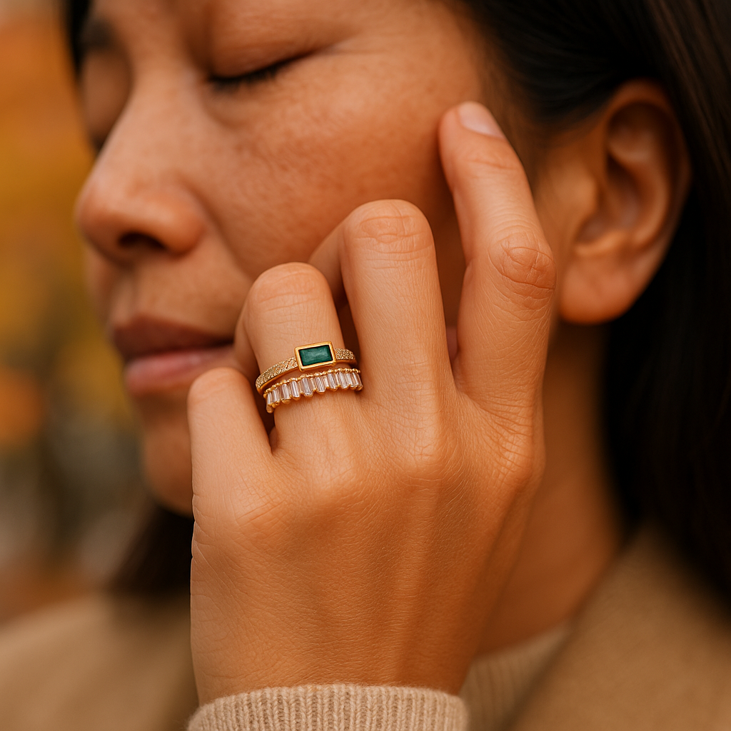 深い森の光を宿したような澄んだきらめきが、指先に上品な余韻を残します。