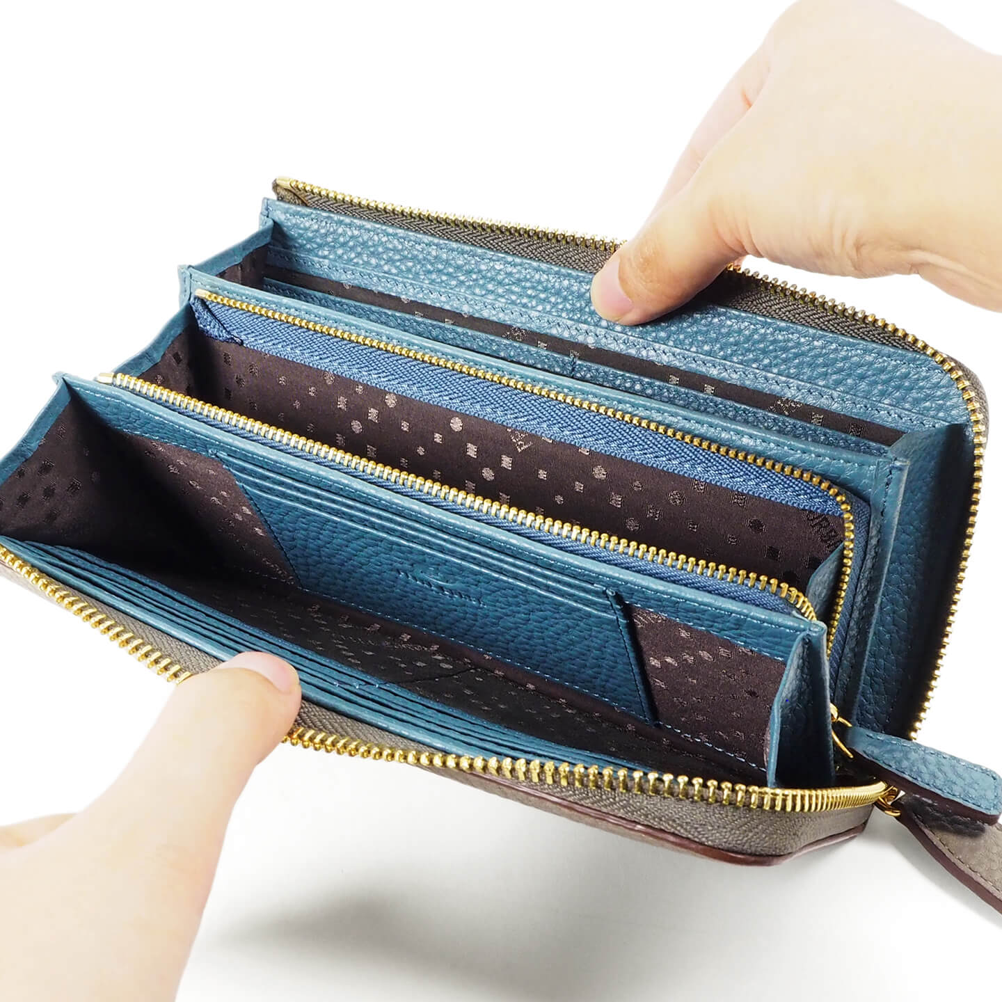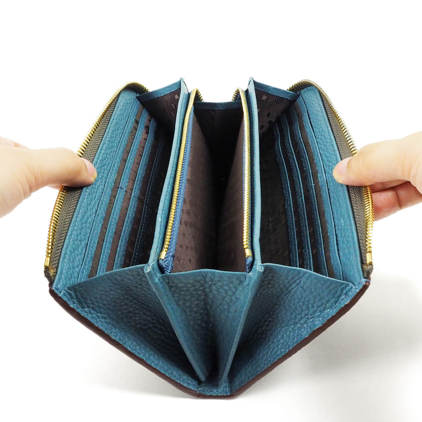 【内装】L字ファスナー小銭入れ、マチ付きポケット×2、オープンポケット×3、カードポケット×15