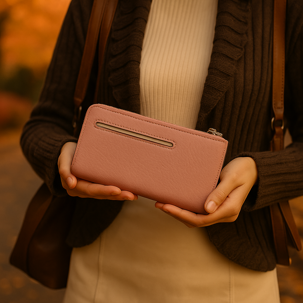 上質な天然シュリンクレザーのL字ファスナー長財布