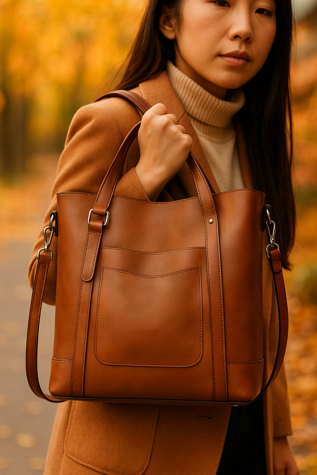 高品質な素材 – 環境に優しく、上品な艶を持つプレミアムヴィーガンレザーを使用。