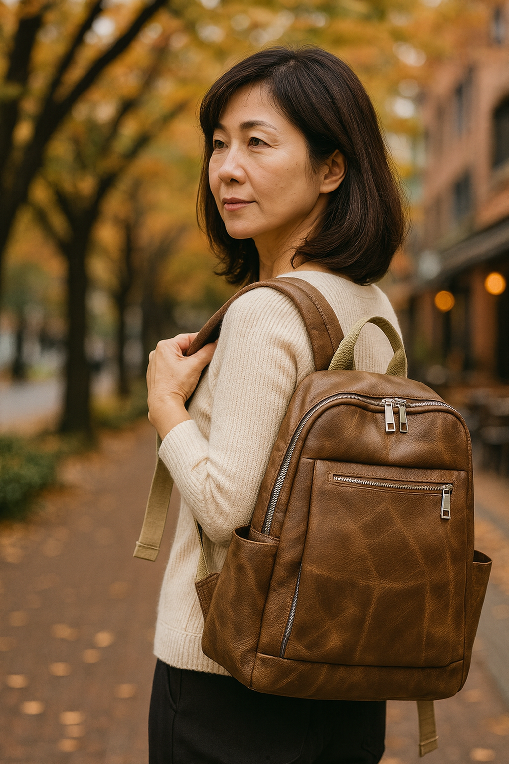 ミニマルなフォルムと丁寧なクラフトマンシップが調和した、上品で実用的なバックパックです。